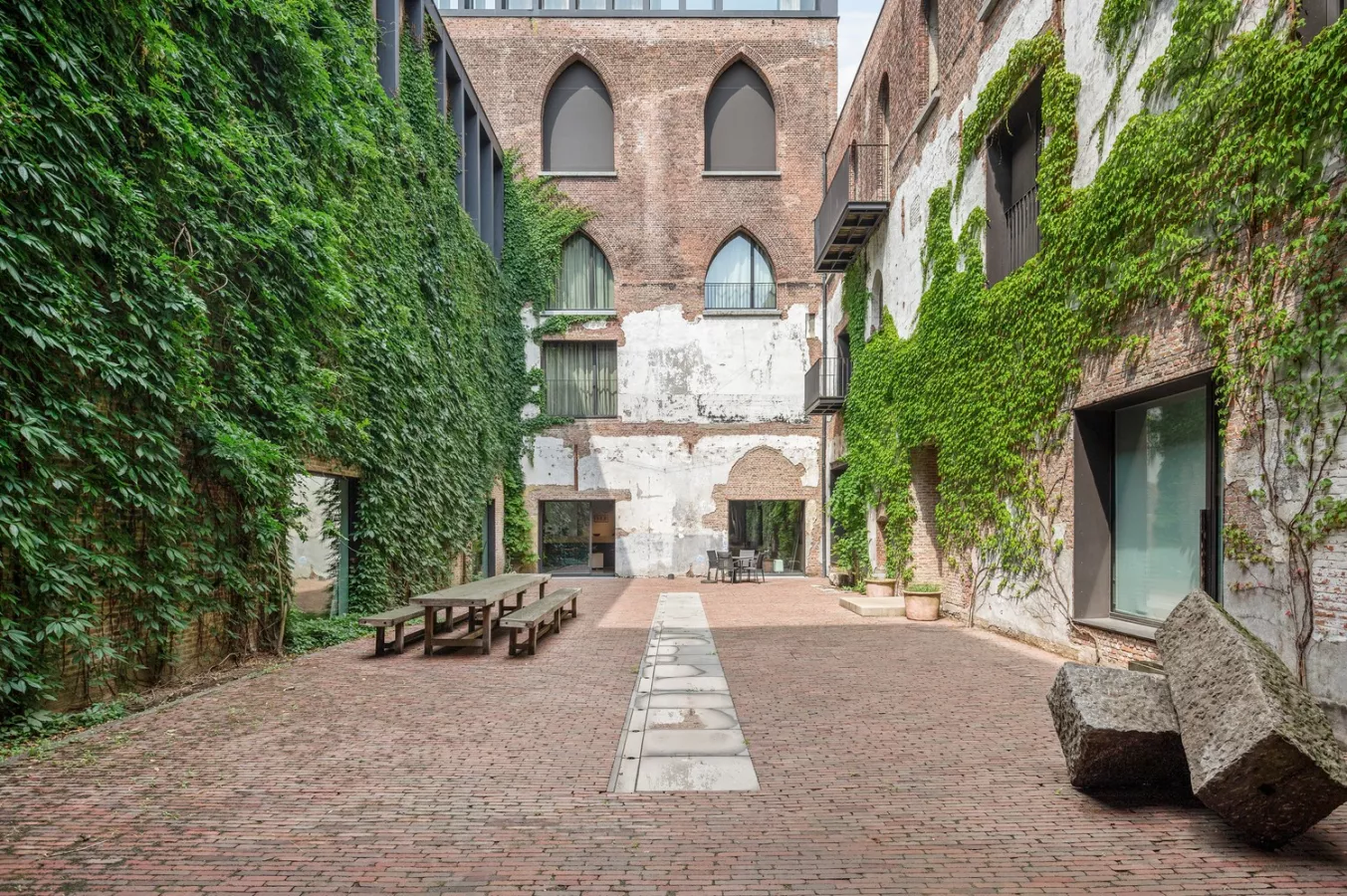 Deze voormalige distilleerderij langs het Albertkanaal werd omgevormd tot een ware 'stad in het groen' met lofts, kantoren, ateliers en expositieruimtes.