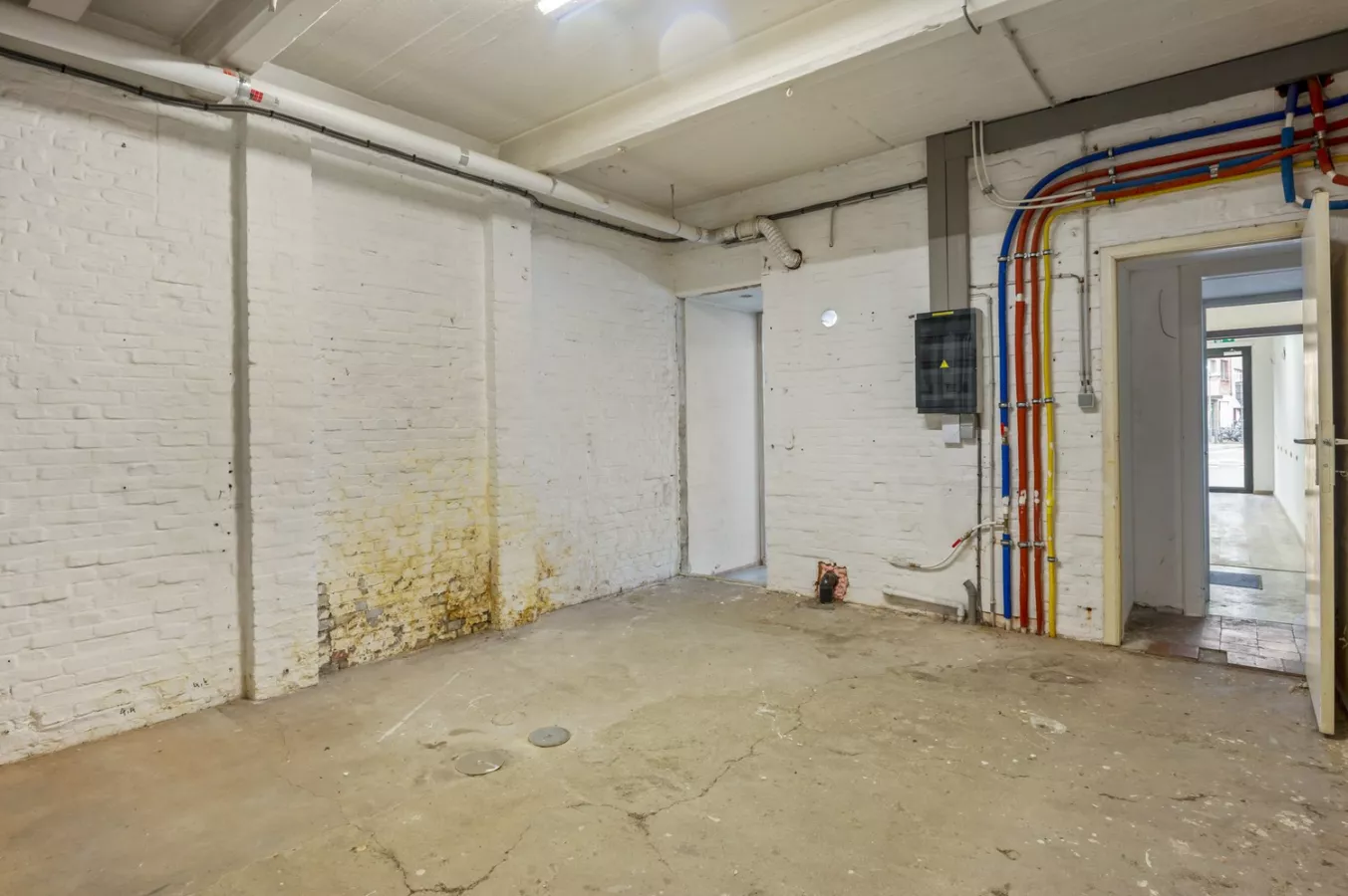 Het gelijkvloers bestaat uit de handelsruimte met een hal, toilet en opbergruimte.