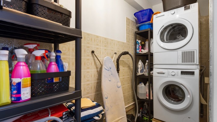 De moderne keuken is volledig geïnstalleerd en voorzien van alle nodige toestellen alsook een praktische bergruimte.