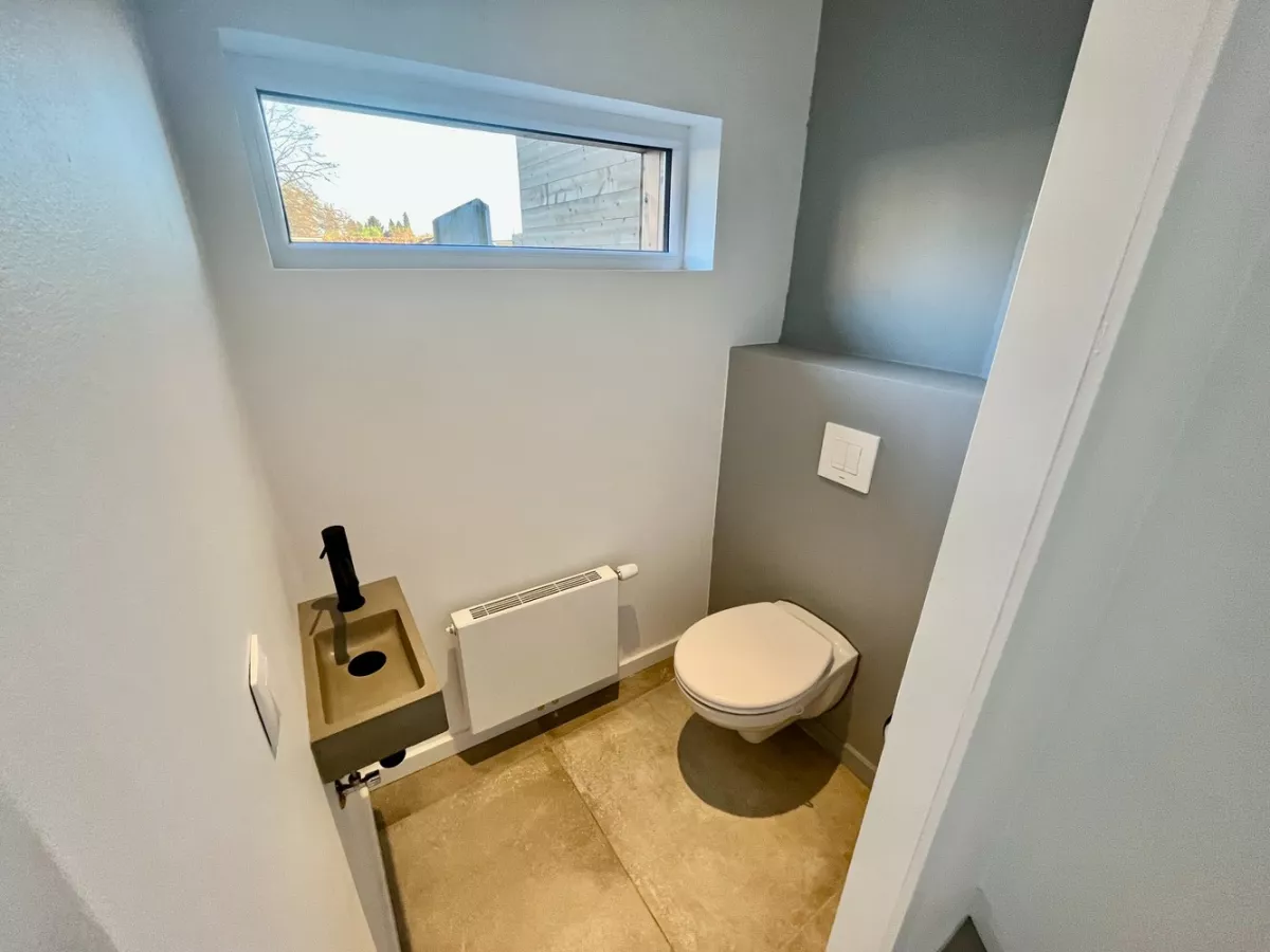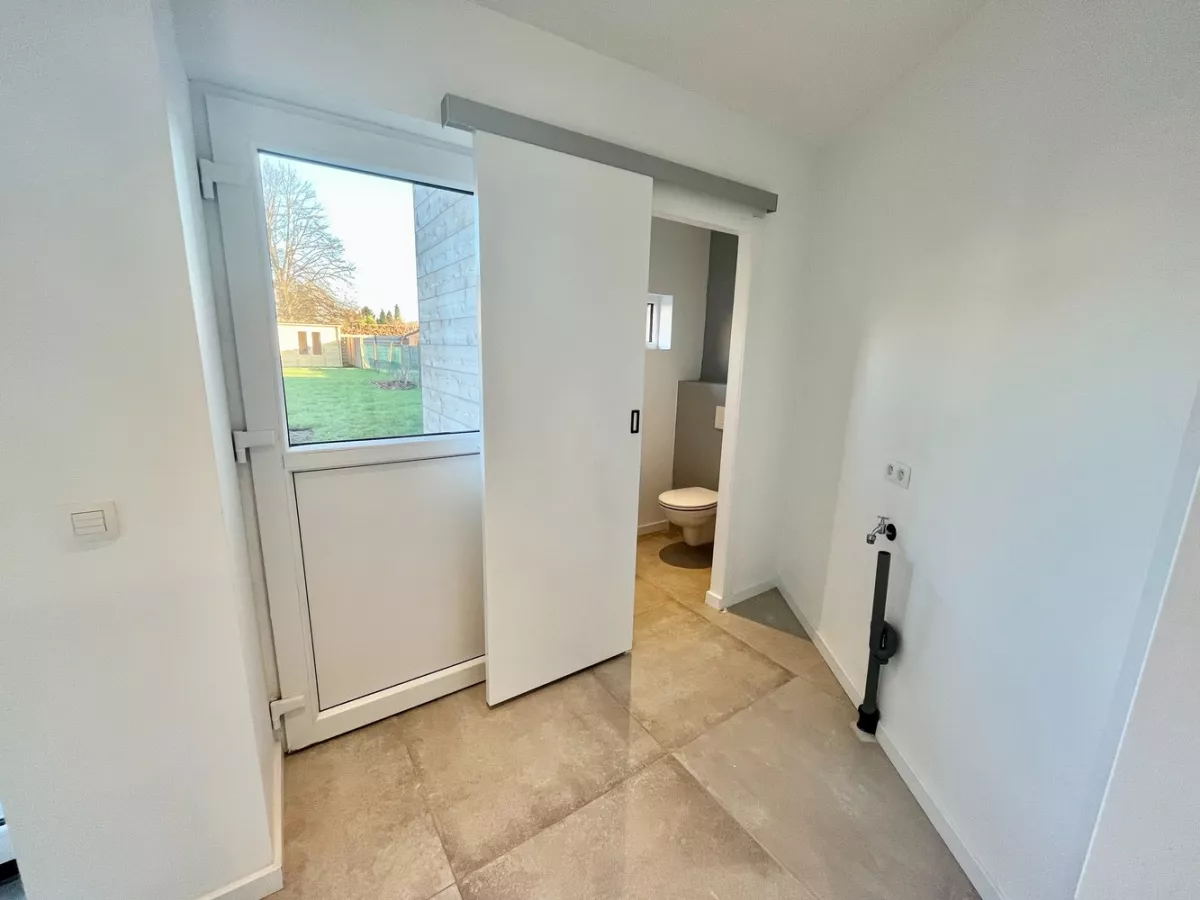 Naast de keuken bevindt er zich een aansluiting voor een wasmachine en een droogkast alsook een apart gastentoilet.