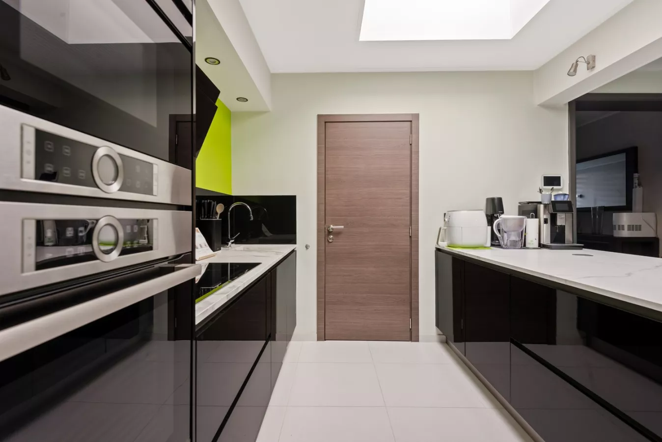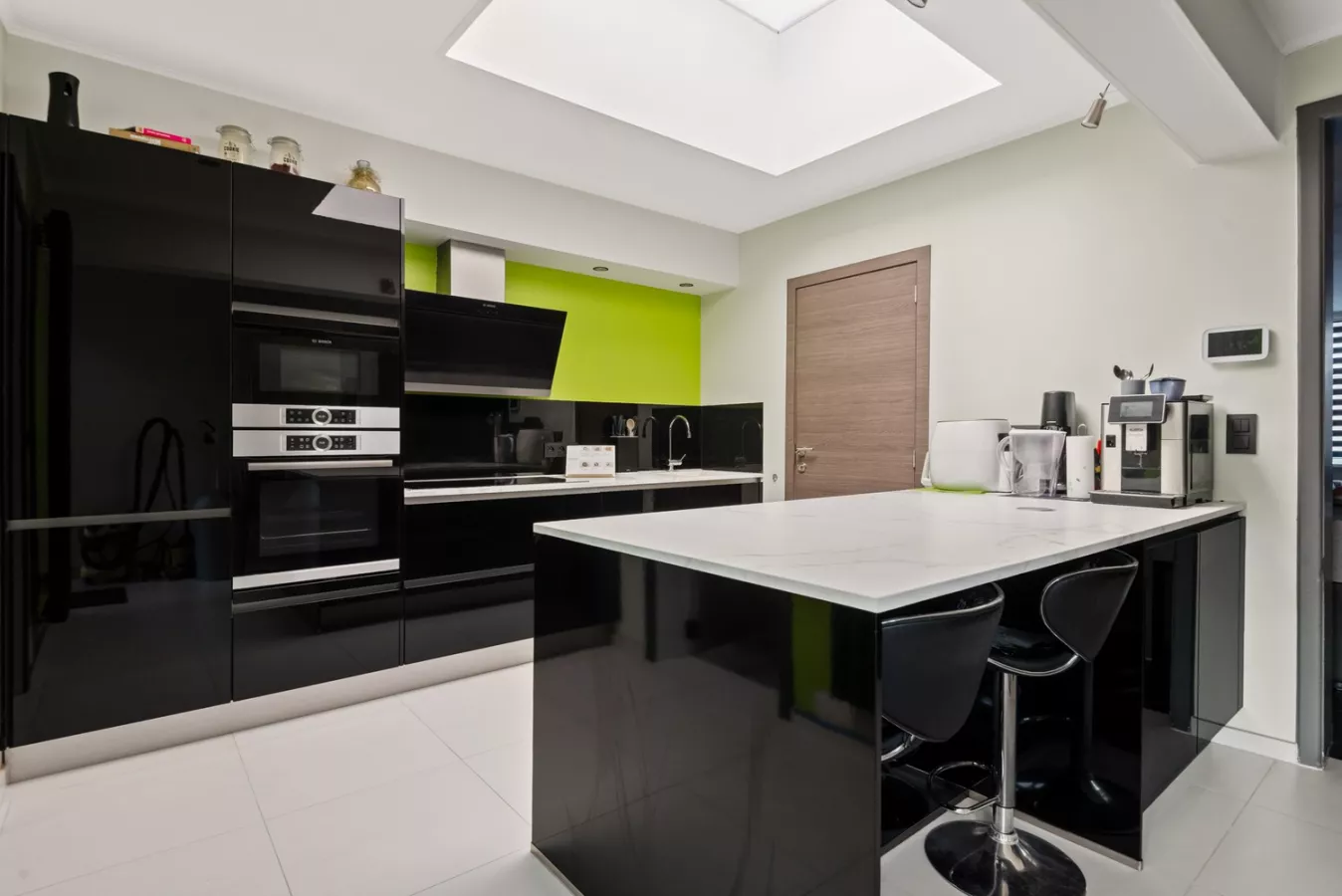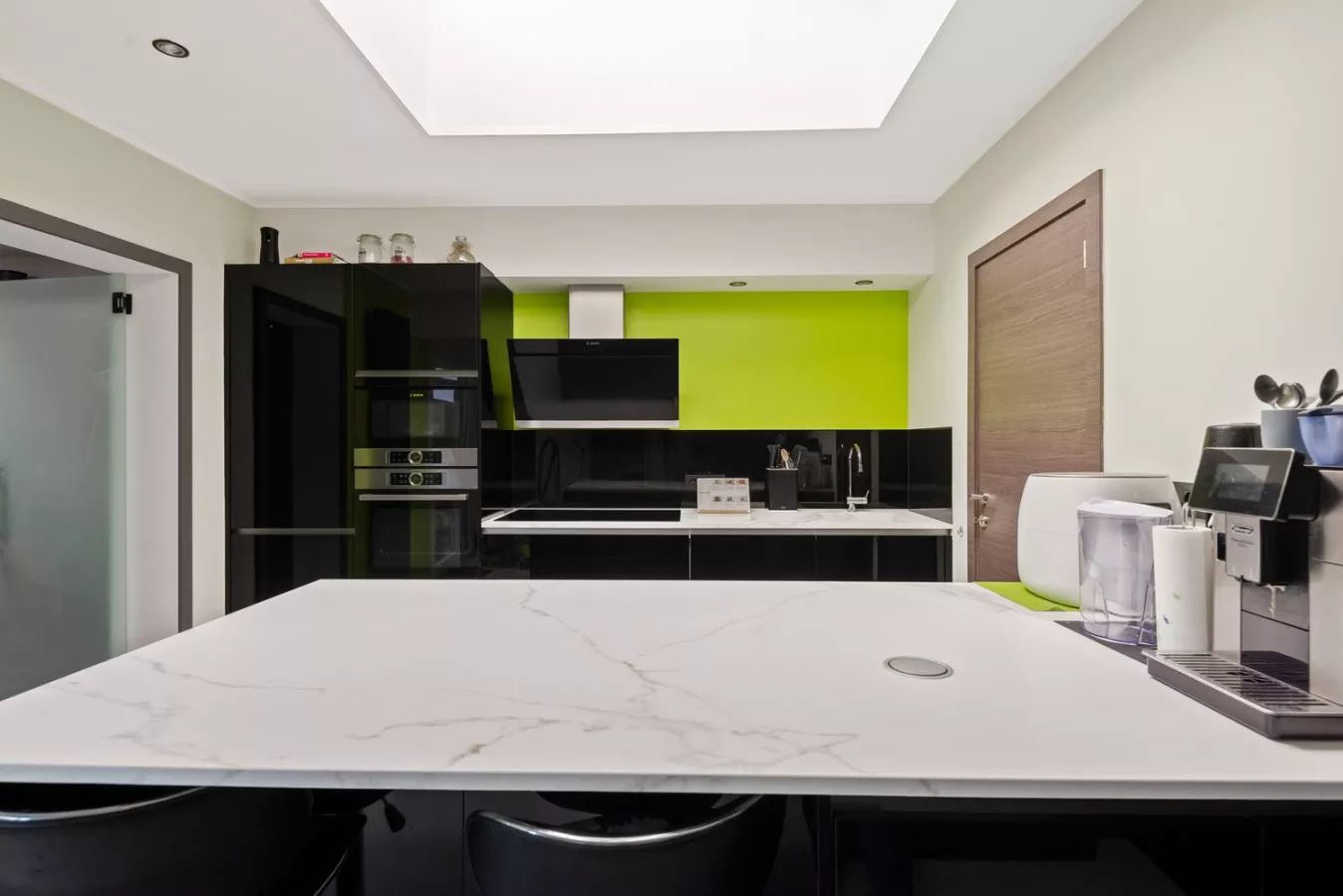 Aansluitend op de leefruimte bevindt zich de modern ingerichte en geïnstalleerde keuken met kookeiland. De keuken geniet van extra daglicht door de lichtkoepel.