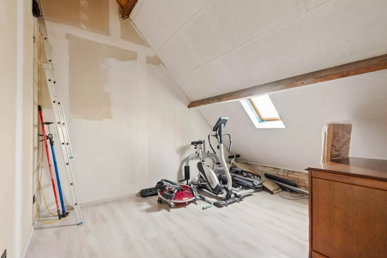 Op de tweede verdieping bevinden zich vervolgens de derde slaapkamer (16m²) en een ruimte met mezzanine (17m²) die mits een kleine aanpassing eventueel kan ingericht worden als vierde slaapkamer.
