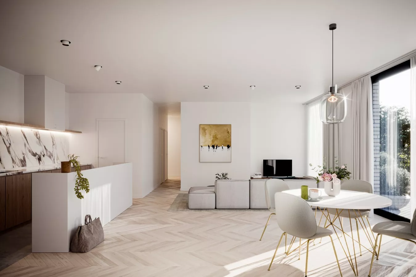Alle appartementen worden voorzien van een kwalitatieve afwerking waarin u zelf nog de hand hebt. Op deze manier kan u uw appartement volledig naar eigen smaak en keuze laten inrichten.