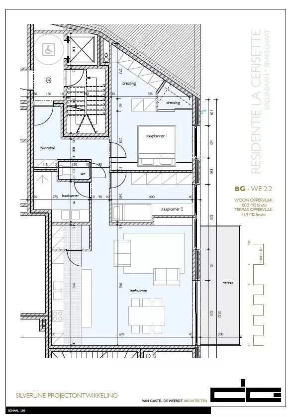 Zeer praktisch twee slaapkamer appartement gelegen op de tweede verdieping (100,5m²) met aangelegd terras (11,9m²)!